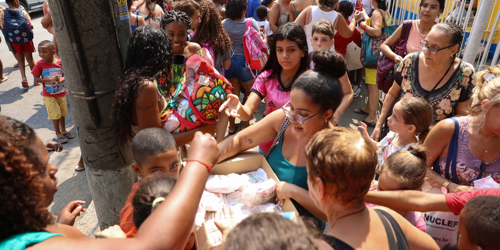“O leite é uma forma de ajudar. Não tem como a gente ajudar todo mundo, mas olha quantas crianças necessitadas você vê aqui na rua”, aponta para a criançada na rua que é um dos acessos ao Morro do Andaraí.