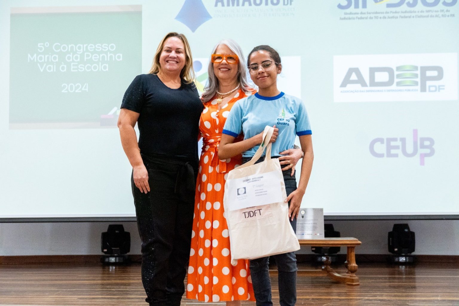 O Congresso “Maria da Penha Vai à Escola” premiou na manhã desta segunda-feira (18) iniciativas que se destacaram no enfrentamento à violência de gênero no ambiente escolar. Realizado no Centro de Convenções Ulysses Guimarães, o evento reuniu professores, estudantes e autoridades para celebrar projetos desenvolvidos em instituições de ensino do Distrito Federal.