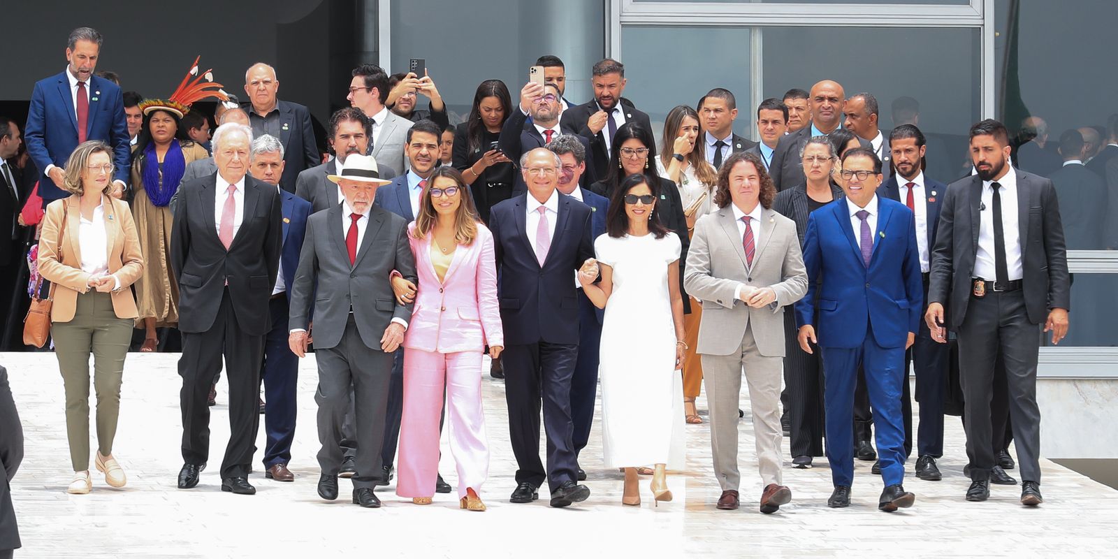 Após a cerimônia no Salão Nobre do Planalto, Lula e as autoridades desceram a rampa do palácio para um ato na Praça dos Três Poderes, batizado de Abraço da Democracia, com a presença de populares e movimentos sociais.
